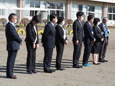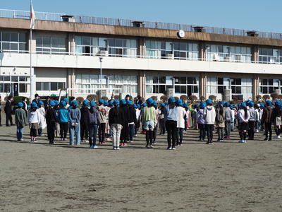 始業式終了後、クラスごとに行進で昇降口へ向かいます。