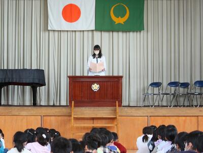 始業式、児童代表目標の発表「150年の伝統を引き継ぎ、新しい歴史をみんなで作っていきましょう!」