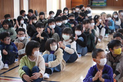 担任発表、児童の温かい拍手につつまれて・・・