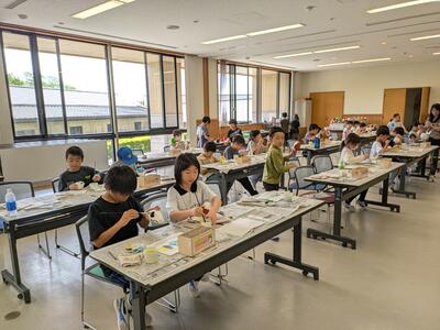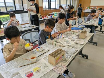 4年生は、フクロウ張り子の絵付け、5年生ほ焼き板細工に挑戦です。