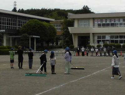 5,6年生が、明日の運動会に向けて会場準備、係の最終確認を行いました。