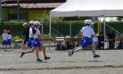 薄葉ブルーの空の下、薄葉っ子全員が力を合わせ、赤組も白組も全力でがんばりました!