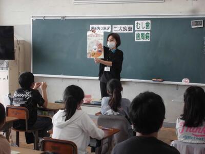 2,4,6年生が、むし歯、歯周病の予防、正しい歯の磨き方について、歯科衛生士さんに教えてもらいました。